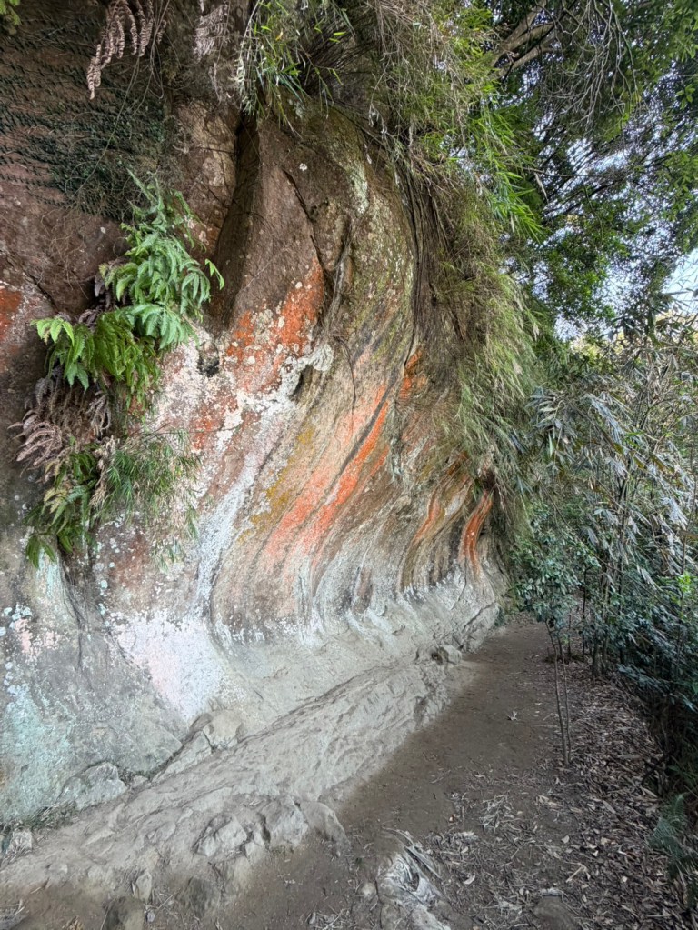 返程覺得沒信心可以原路折回,於是直接切近路下山,從產業道路離開,離開時回頭看這座山,突然覺得十分感謝,這三小時受到了很全面照顧感,有一步滑了,差點跌倒但居然沒有;離開的最後一段階梯遇見一隻狗,半臥在轉角處下坡時牠知道,但沒有意思要離開,我說:「那就借我個位置。」牠沒動,而我經過牠身旁後,下了階梯再回頭看,牠的眼神依然慵懶,彷彿回答我:「今天好玩,對吧?」